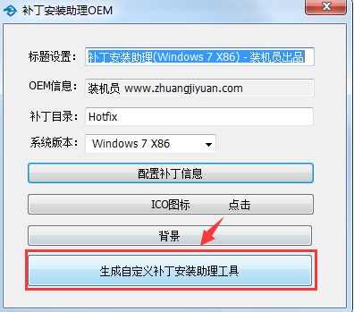 9、返回装机员补丁安装助理OEM主界面单击生成自定义补丁安装助理工具,如下图所示;