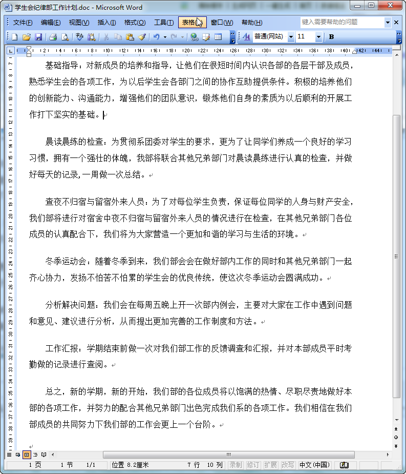 2017学生会纪律部新年工作计划预览