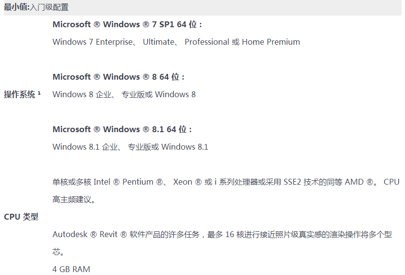 这个只是一部分,因为太多,想要更详细,只需要点击autodesk revit 2016配置要求,就可以更加详细的查看