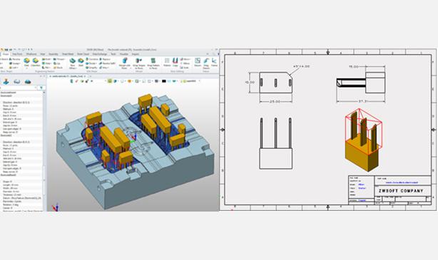 proe是基本都要用到草图,但是ZW可以用基体来创建,提高效率,这点和UG很相似。而且中望3D里面3d零件模式和2d工程图可以进行快速转换。在pro里操作的时候,实体一定要是封闭的,后续才可以编辑,但是ZW里,封不封闭都可以操作,特别是有开放边界的图形也可以进行分模。但是有开放边界的图形在pro里很头大。