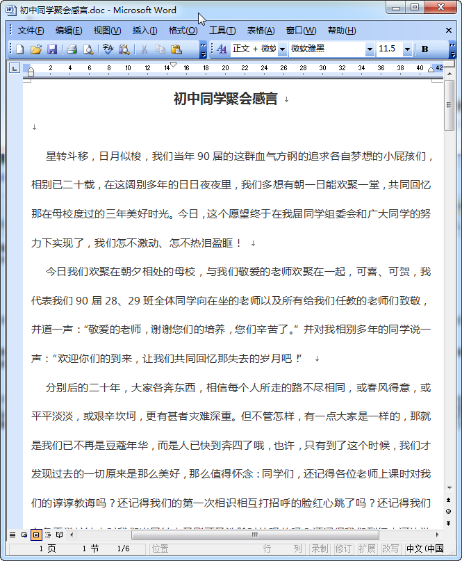 今日我们欢聚在朝夕相处的母校,与我们敬爱的老师欢聚在一起,可喜、可贺,我代表我们90届28、29班全体同学向在坐的老师以及所有给我们任教的老师们致敬,并道一声:“敬爱的老师,谢谢您们的培养,您们辛苦了。”并对我相别多年的同学说一声:“欢迎你们的到来,让我们共同回忆那失去的岁月吧!”