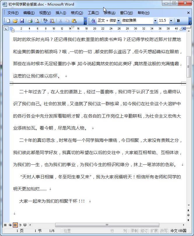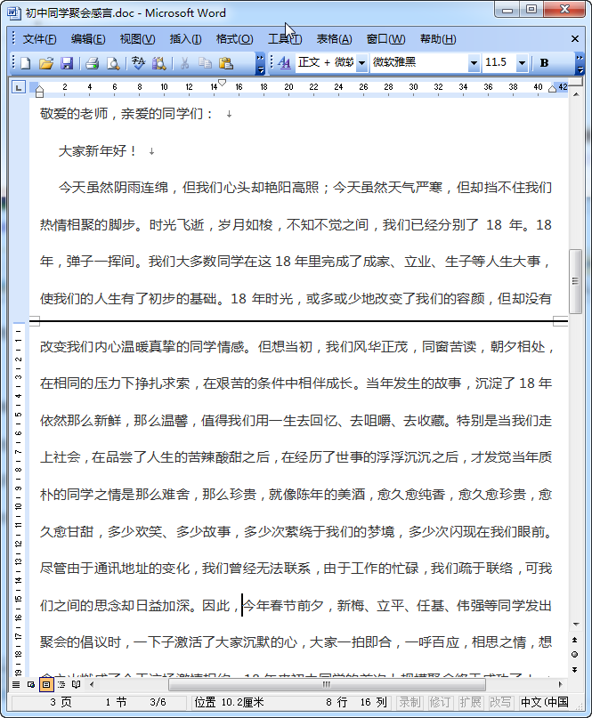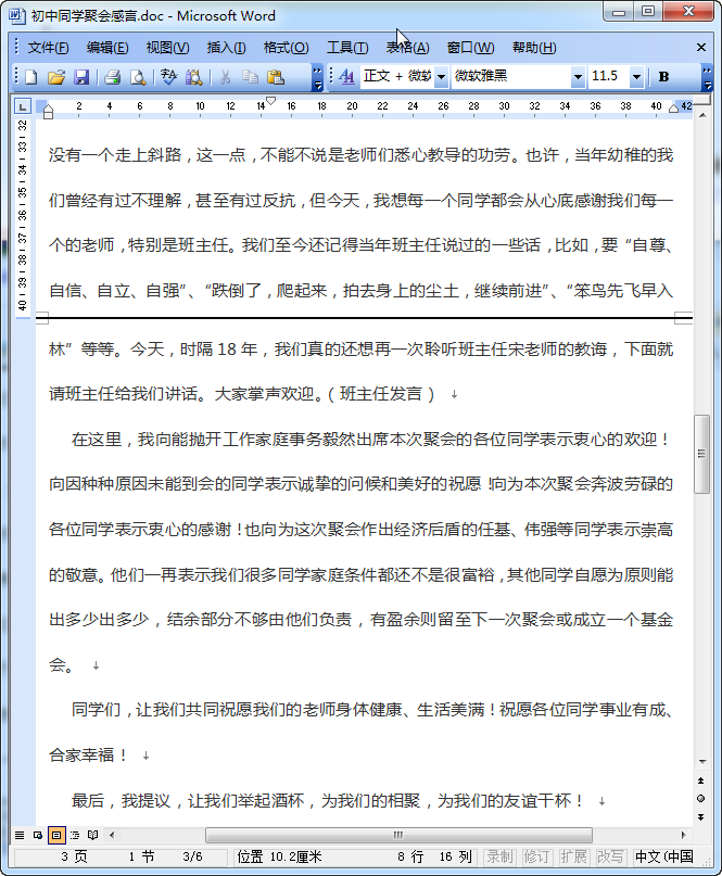 今天虽然阴雨连绵,但我们心头却艳阳高照;今天虽然天气严寒,但却挡不住我们热情相聚的脚步。时光飞逝,岁月如梭,不知不觉之间,我们已经分别了18年。18年,弹子一挥间。我们大多数同学在这18年里完成了成家、立业、生子等人生大事,使我们的人生有了初步的基础。18年时光,或多或少地改变了我们的容颜,但却没有改变我们内心温暖真挚的同学情感。但想当初,我们风华正茂,同窗苦读,朝夕相处,在相同的压力下挣扎求索,在艰苦的条件中相伴成长。当年发生的故事,沉淀了18年依然那么新鲜,那么温馨,值得我们用一生去回忆、去咀嚼、去收藏。特别是当我们走上社会,在品尝了人生的苦辣酸甜之后,在经历了世事的浮浮沉沉之后,才发觉当年质朴的同学之情是那么难舍,那么珍贵,就像陈年的美酒,愈久愈纯香,愈久愈珍贵,愈久愈甘甜,多少欢笑、多少故事,多少次萦绕于我们的梦境,多少次闪现在我们眼前。尽管由于通讯地址的变化,我们曾经无法联系,由于工作的忙碌,我们疏于联络,可我们之间的思念却日益加深。因此,今年春节前夕,新梅、立平、任基、伟强等同学发出聚会的倡议时,一下子激活了大家沉默的心,大家一拍即合,一呼百应,相思之情,想念之火燃成了今天这场激情相约,18年来初中同学的首次大规模聚会终于成功了