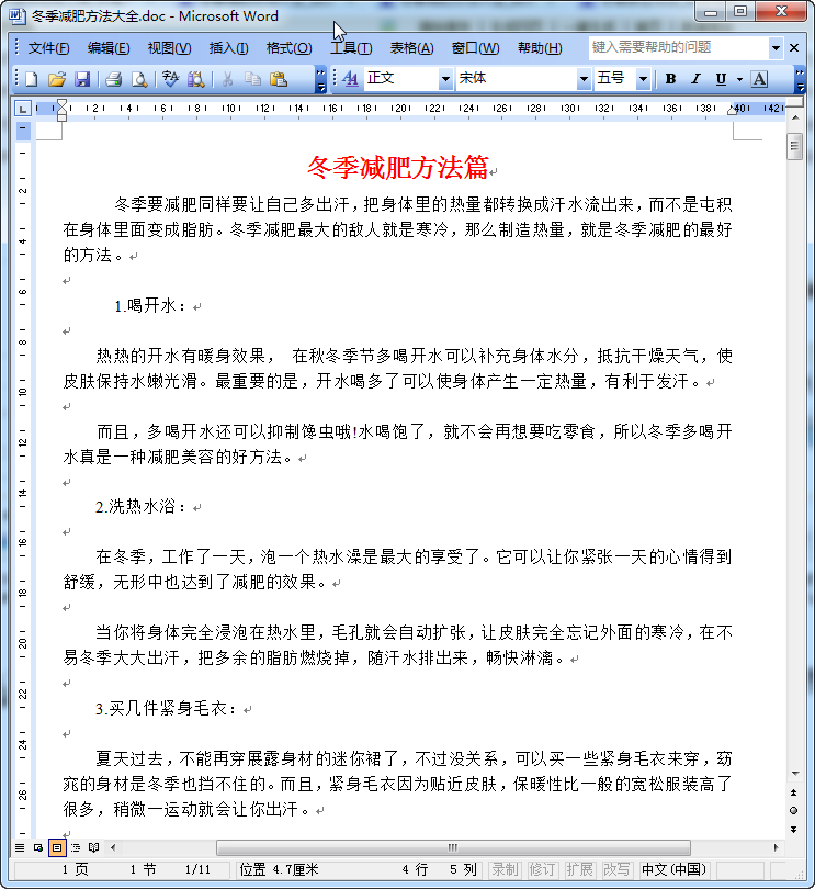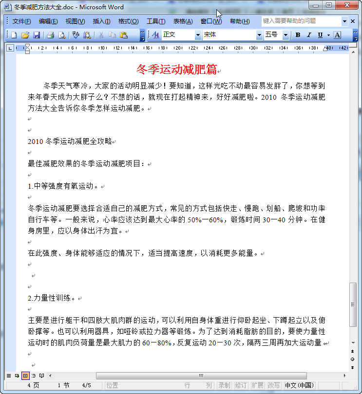 这是一篇冬季减肥方法大全,在寒冷的冬季帮助大家顺利的完成减肥,以免到了夏天难过(女生们都懂),对这篇冬季减肥瘦身方法感兴趣的朋友可以直接点击下面的地址免费的下载使用,丰富的内容绝对可以帮到大家!
