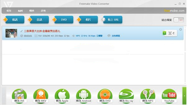 Freemake Video Converter 支持的格式有 AVI, MP4, WMV, MKV, MPEG, FLV, SWF, 3GP, DVD, MP3, iPod, iPhone, PSP, Android等200种以上格式,可以说支持90%常见的视频格式了,同时具备刻录和视频编辑功能。
