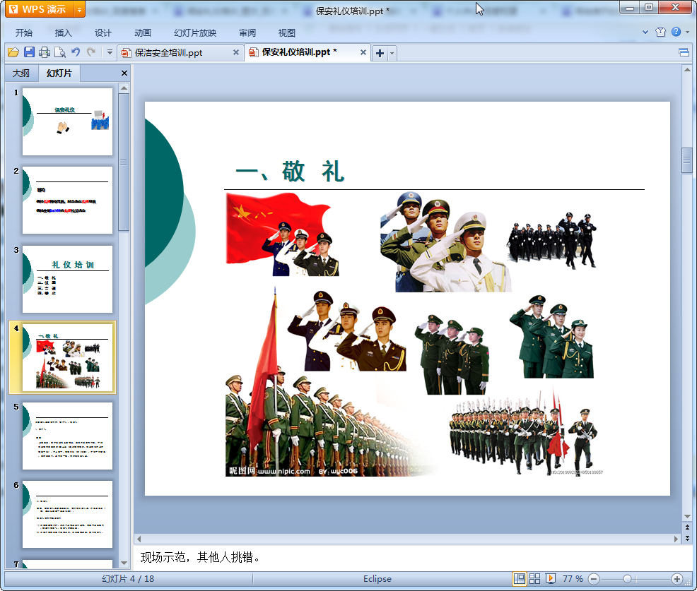 这是我们东坡下载为大家准备的一篇保安礼仪培训ppt模板,内容制作比较精美,有需要准备该礼仪培训ppt模板的朋友可以来我们东坡免费的下载这篇保安礼仪培训ppt,精美的ppt模板一定会让你满意的!