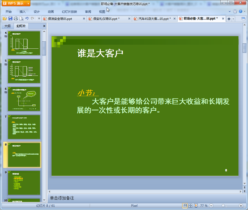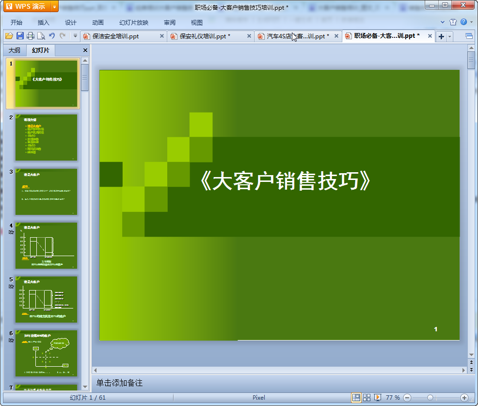 这是一篇共有61页的大客户销售技巧培训ppt,有需要准备销售技巧培训ppt模板的朋友可以来我们这里看看,这篇精美丰富的大客户销售技巧ppt肯定不会让你们失望,有需要可以来我们东坡免费的下载使用!