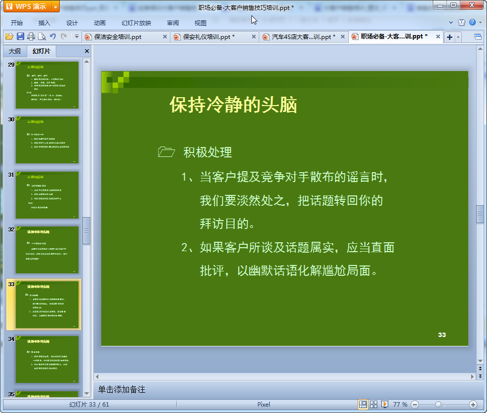 认为如果客户提的问题太多就不能完成这次销售,还有些销售人员不能很好的处理客户疑问,导致不能成交,下面是我总结的销售技巧培训的五条金律,希望能对各位有所帮助。