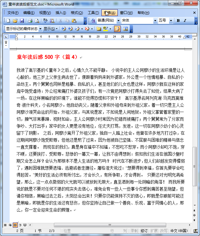 童年读后感500字(篇1)