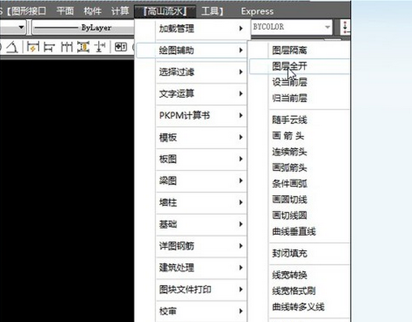 在cad中找到高山流水,就能够正常应用