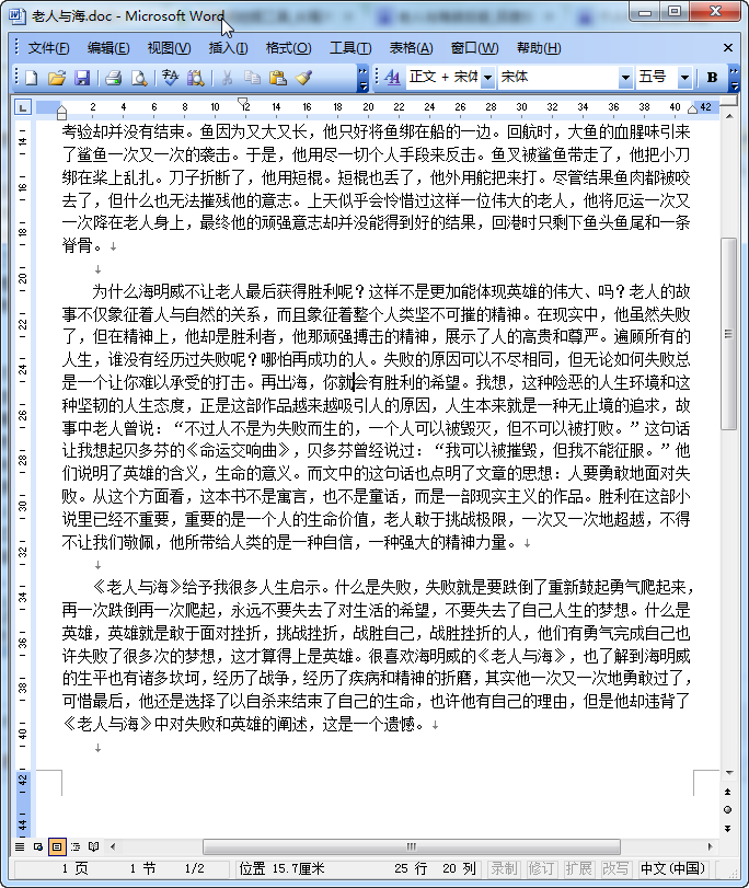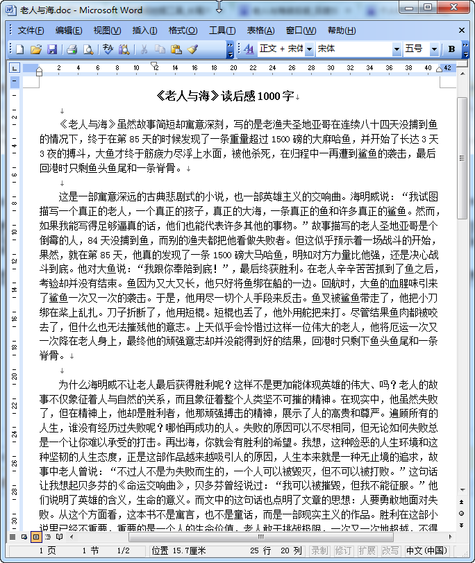 老人与海读后感范文预览