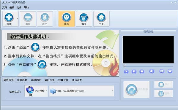 2、 能将各种格式视频转换为VCD光盘视频格式。