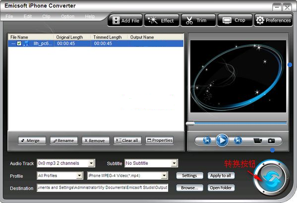 iphone音频转换器(Emicsoft iPhone Converter),一款可以快速转换音频\视频格式成MP4格式的软件,这样就可以让你的iphone想看什么就看什么啦,有需要的赶紧来下载使用吧。