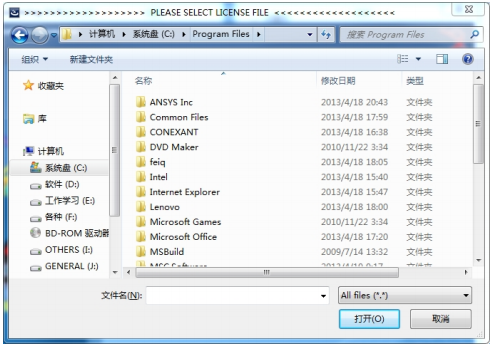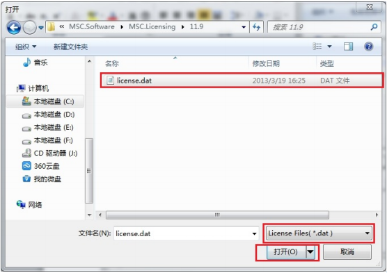 注意点第二个 Browse 后,在弹出的窗口中右下角的 License Files 格式选择为*.dat,才能找到 license.dat 文件。