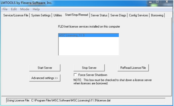 (C:\MSC.Software\MSC.Licensing\11.9)