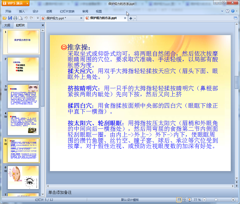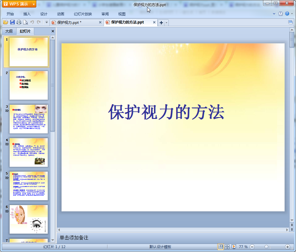 这是我们东坡下载为大家准备的一篇儿童保护视力的方法课件,现在我国的近视问题是越来越严重,老师们也需要多多的注重学生们保护视力这方面的教育了,这里我们的这篇保护视力ppt有兴趣的老师们可以来这里免费的下载使用!