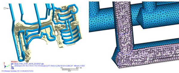 在新版R13.0中,突破了以往无法直接从CAD汇入流道和冷却系统几何的限制。用户在Moldex3D Designer BLM模式中,不需要重新绘制曲线流道与水路,就可以利用原先已经设计好的流道与水路几何进行网格生成。这项改良不但缩短了网格准备时间,更能提升分析准确度,让网格忠实呈现原始设计。