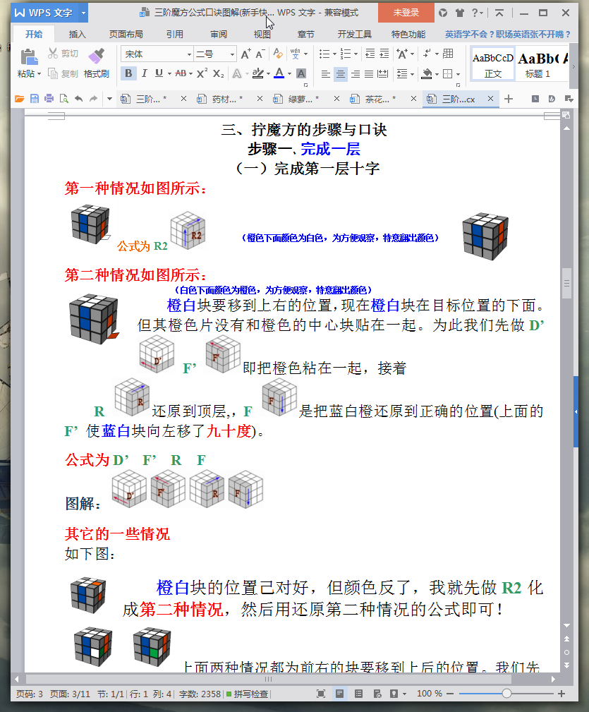 三阶魔方公式口诀图解(新手入门攻略)内容预览