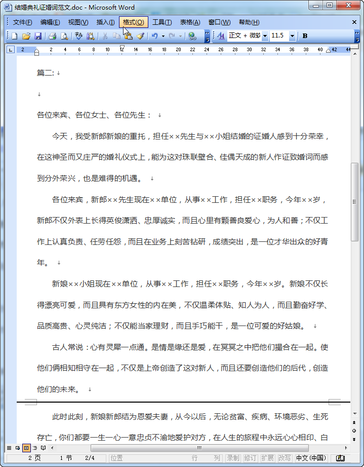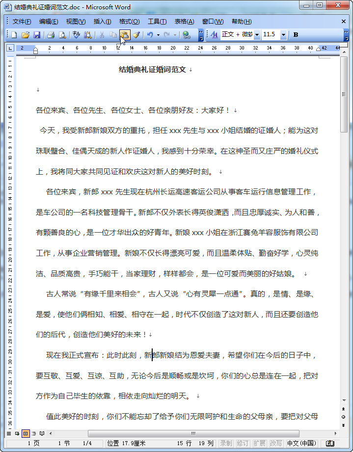 今天,我受新郎新娘双方的重托,担任xxx先生与xxx小姐结婚的证婚人;能为这对珠联璧合、佳偶天成的新人作证婚人,我感到十分荣幸。在这神圣而又庄严的婚礼仪式上,我将同大家共同见证和欢庆这对新人的美好时刻。