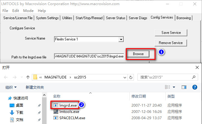 11.在”Path the Imgrd.exe“加载破解文件夹下的”lmgrd.exe“.