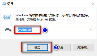 16.最后设置环境变量。在桌面使用“WIN+R”.键入sysdm.cpl.点击确定。如下图