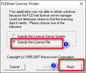 19.最后打开软件会提示如下界面。选中“Specify the License File”.然后在点击“Next”。如下图