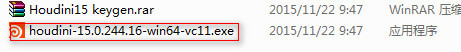 2.解压下载文件,得到一个名为houdini-15.0.244.16-win64-vc11.exe的文件,如下图