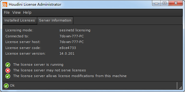 11.点击“Server information”可以看到电脑相关的license信息;