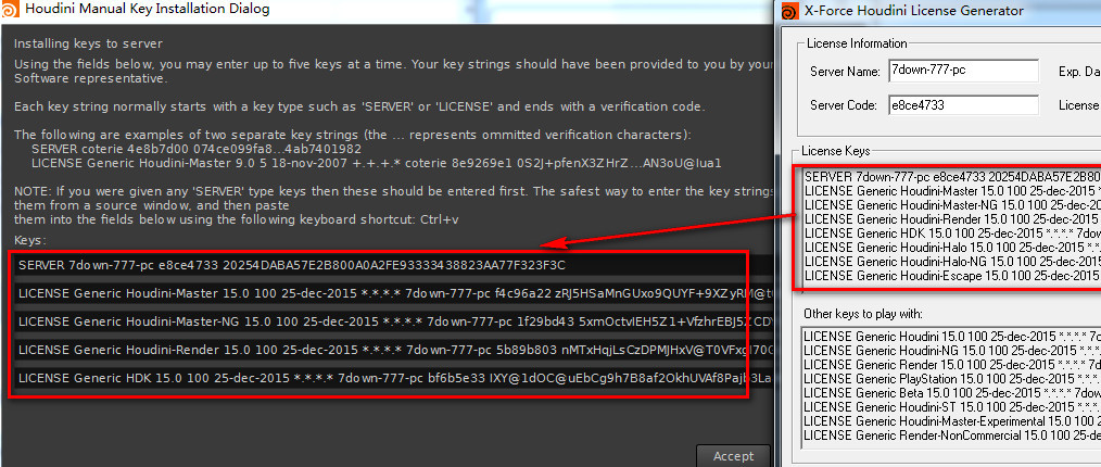 14.这里只显示5行,其实要输入15行注册码,也就是输完5行,就要点accept,注册完之后,再根据上面的方法再输入5行,直到,全部注册完为止