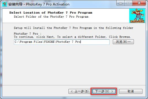 3.程序会自动搜索PhotoKey 7 Pro的安装目录(如果你换了目录看一下是不是你安装的那个目录)下一步