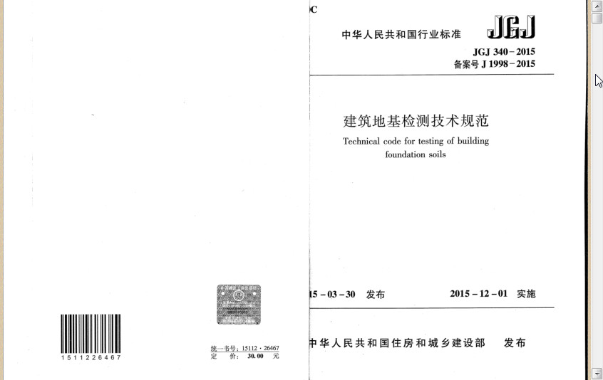 JGJ 340-2015 建筑地基检测技术规范,一份完美的pdf格式的建筑设计规范,非常的标准,根据国家最新规定设计而成,在2015年12月1日开始实施,特别的实用,欢迎有需要的朋友前来东坡下载使用!