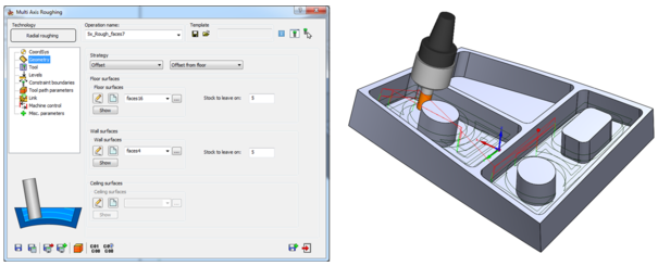 iMachining 3D底部预留量可以让您定义与侧面预留量不同的底部预留量。