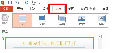 1、打开PPT,进入“切换”菜单。