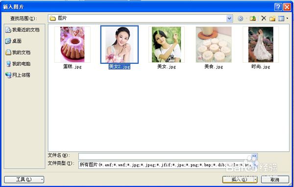 3、在弹出的菜单中找到所要导入到PPT中的图片背景,单击插入按钮,然后依次选择全部应用,关闭,即可看到PPT的背景已经变成了导入的图片。