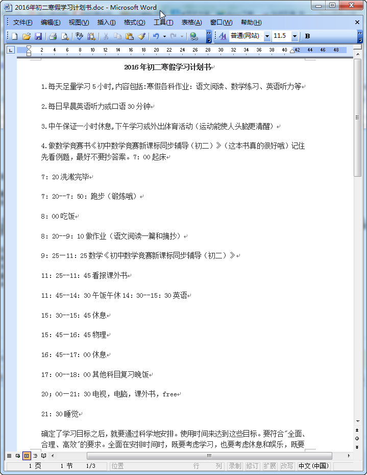 1.每天足量学习5小时,内容包括:寒假各科作业:语文阅读、数学练习、英语听力等