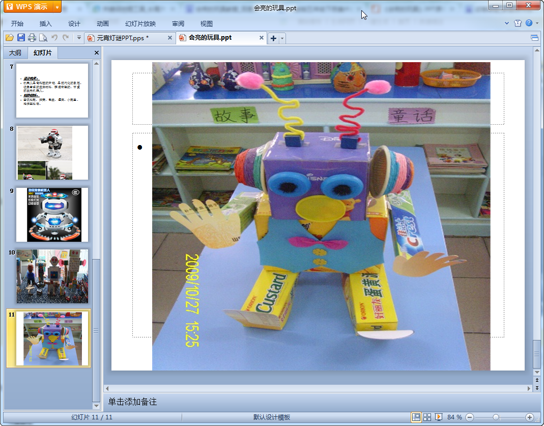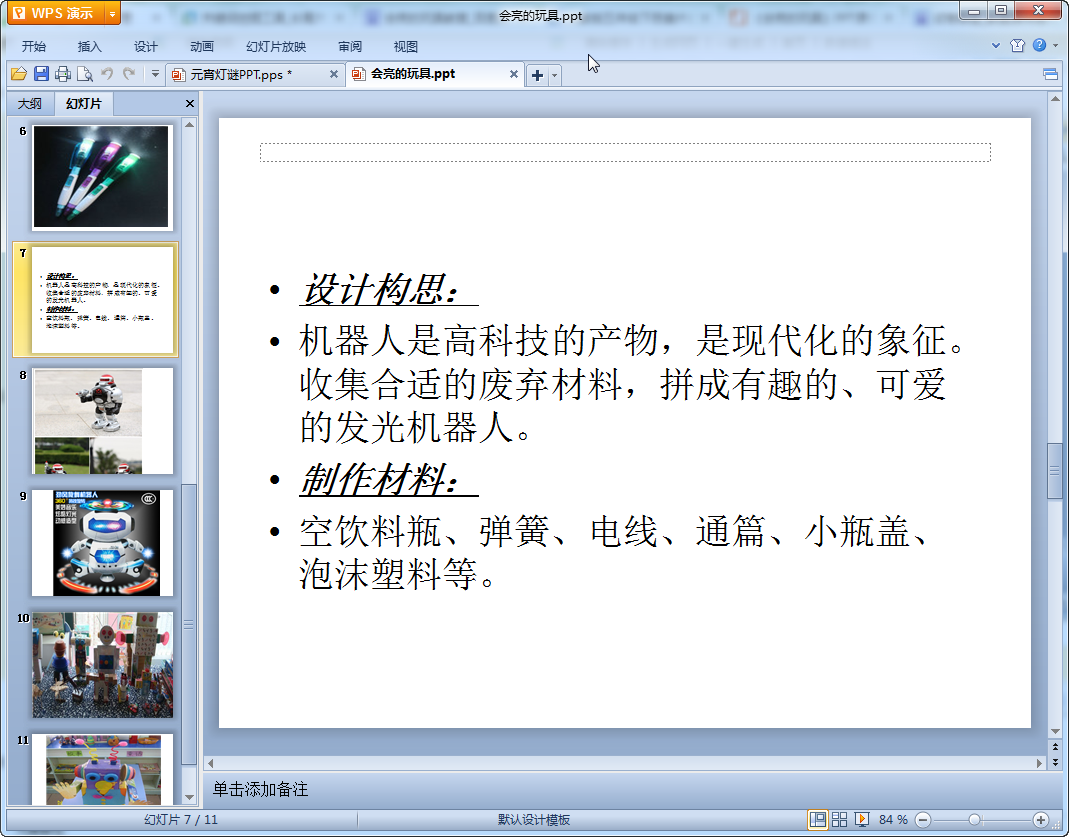 2、 引导学生发挥想象力,将各种材料加工成会亮的玩具。