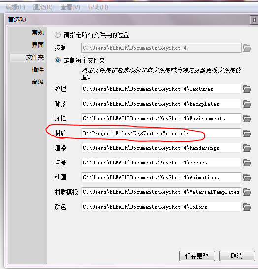 3.在文件夹选项找到自己安装的时候,材质库的路径,然后打开它,覆盖或者新增下地址就可以了。