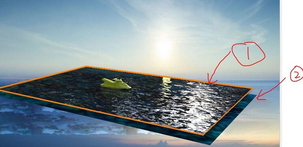 7、接下来我们建立一个球体 然后赋予自发光材质,调整到远处水面消失的地方,调整合适的灯光亮度,直到在水面和天空交接的地方有合适的倒影。