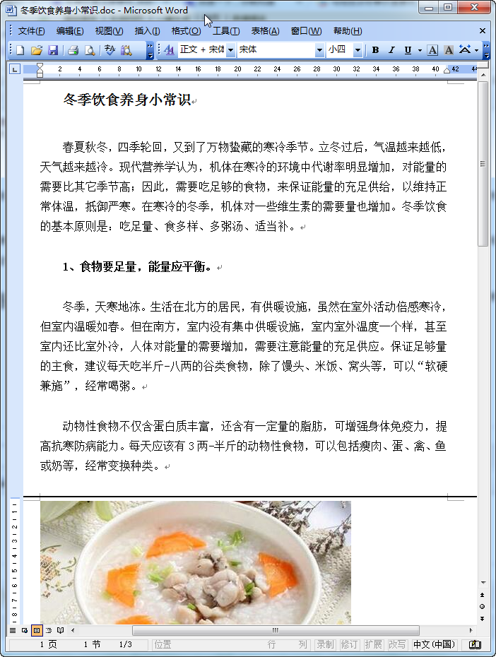 冬季,天寒地冻。生活在北方的居民,有供暖设施,虽然在室外活动倍感寒冷,但室内温暖如春。但在南方,室内没有集中供暖设施,室内室外温度一个样,甚至室内还比室外冷,人体对能量的需要增加,需要注意能量的充足供应。保证足够量的主食,建议每天吃半斤-八两的谷类食物,除了馒头、米饭、窝头等,可以“软硬兼施”,经常喝粥。