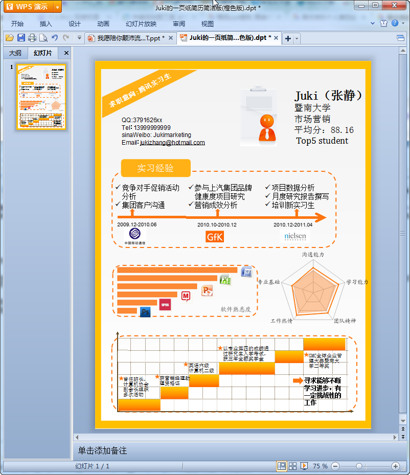 这里是我们东坡小编为大家带来的一篇橙色的一页纸简历简洁版,内容制作简单但是对自身的条件表达的十分清楚一篇一页纸简历模板,有兴趣制作一页纸简历的朋友们可以来看看我们的这篇一页纸简历简洁版(橙色)!