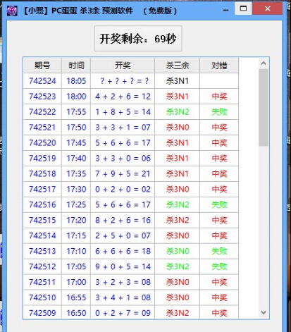 PC蛋蛋预测软件有很多,人人都说自己的最准确,但是到头来,把玩家朋友坑惨了,亏大了。小编也不能保证这款软件有多高的准确率,就小编目前随便测试了下,准确率还算是比较高的,通过杀3余的组合算法实现预测。免费软件,信的朋友可以下载试试!