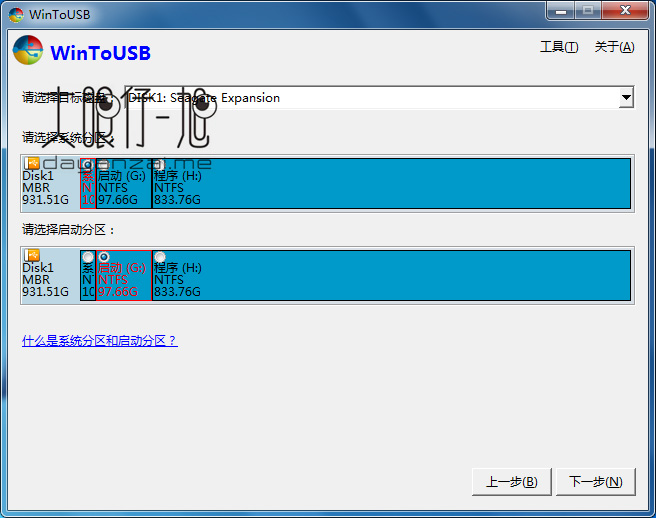 从分区列表显示控件中选择系统分区和启动分区,被选中的分区将被标记为红色。