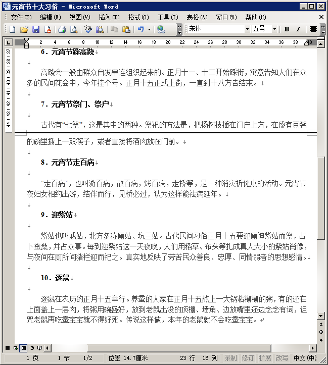 这是我们东坡小编味大家带来的元宵节习俗介绍(十大习俗),详细的讲解的元宵节期间不同地方的习俗介绍,有兴趣想了解的朋友们可以来我们东坡免费的下载这篇元宵节习俗介绍(十大习俗)!