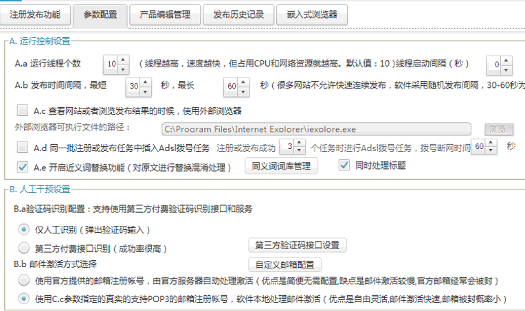 虫虫商务助手是一款针对国内大型B2B和分类信息网站自动化注册和发布的软件,软件采用虫虫营销助手的内核引擎,并在此基础上进行了深度优化,拥有更简约的用户UI,更好的性能和更高的成功率。软件支持的均为百度高权重和高收录的网站,百度权重至少在2以上,或收录超过100万,如阿里巴巴,慧聪,中国供应商等,支持的网站数量在50-100个。