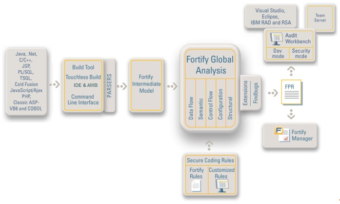 Fortify有很多个语言转换器,但核心的静态分析引擎只有一套。