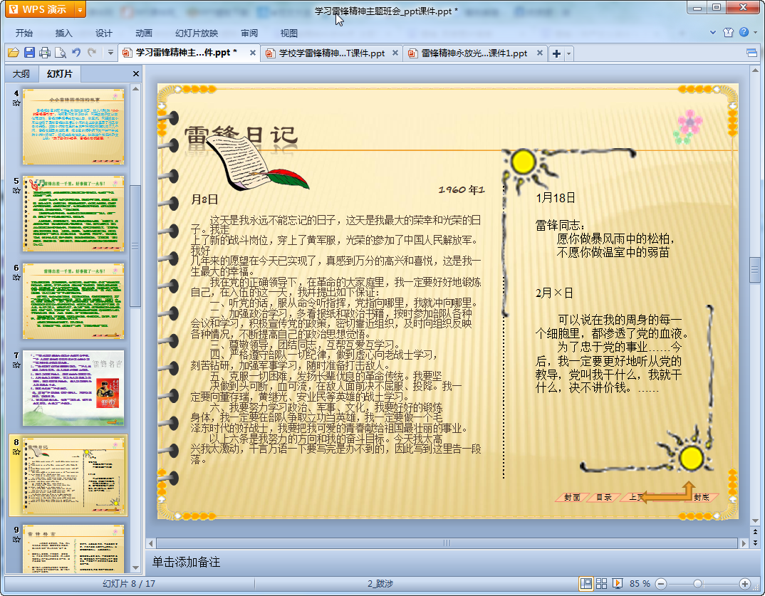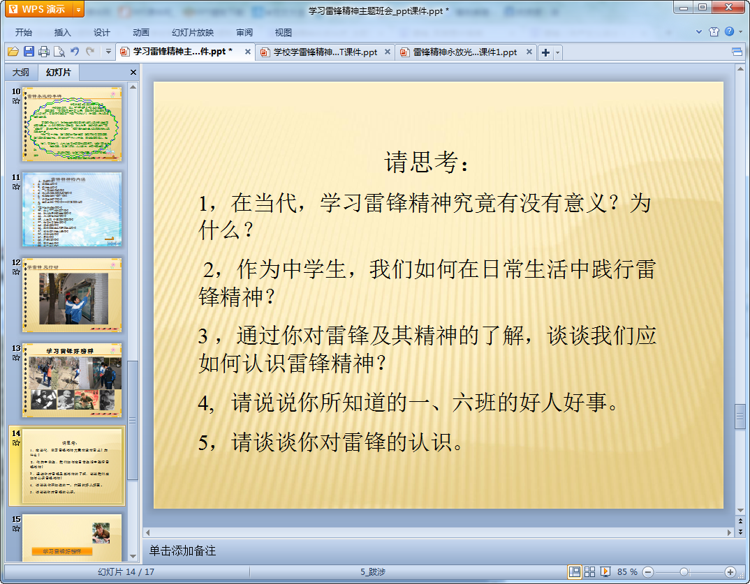 我们东坡下载为即将到来的雷锋纪念日准备了大量的素材,这里带来的是一篇学习雷锋好榜样主题班会课件,需要举办主题班会的老师们可以来看看我们东坡为大家带来这篇免费ppt课件,喜欢的可以直接点击下面的地址免费的下载使用!