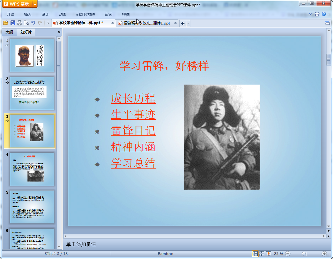 学习雷锋精神主题班会课件内容预览