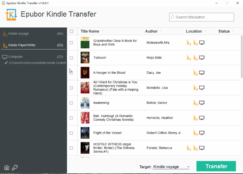 大家都知道kindle上的电子书几乎自能在kindle设备上看,有时候想把好的作品分享给自己的小伙伴,而找不到合适的方法。Epubor Kindle Transfer可以帮你实现kindle epub以及pdf这三者的格式转换,方便导入导出,多设备上观看。欢迎下载!