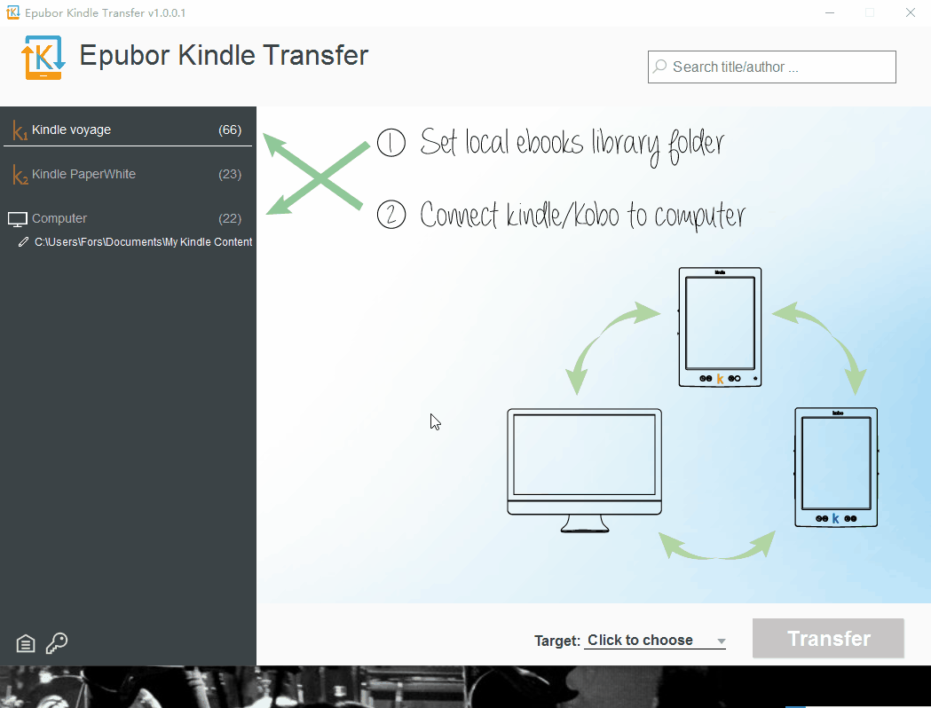 Kindle 和 Kobo 的电子书格式是不同的,然而当使用该软件传输时,电子书格式将自动适配设备。实现 Kindle、EPUB、PDF 之间的传输。