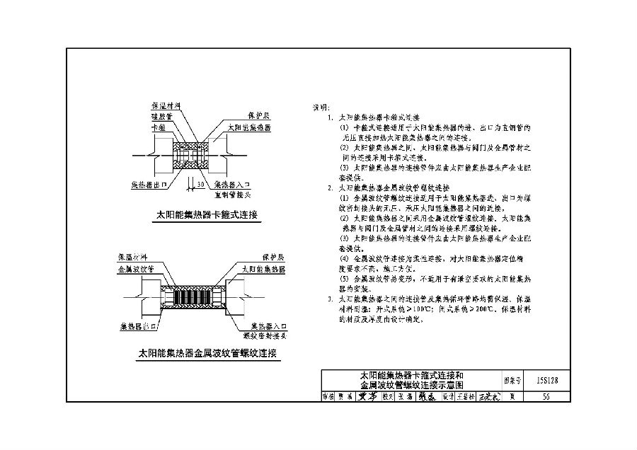 太阳能集热器卡箍式连接和金属波纹管螺纹连接示意图56