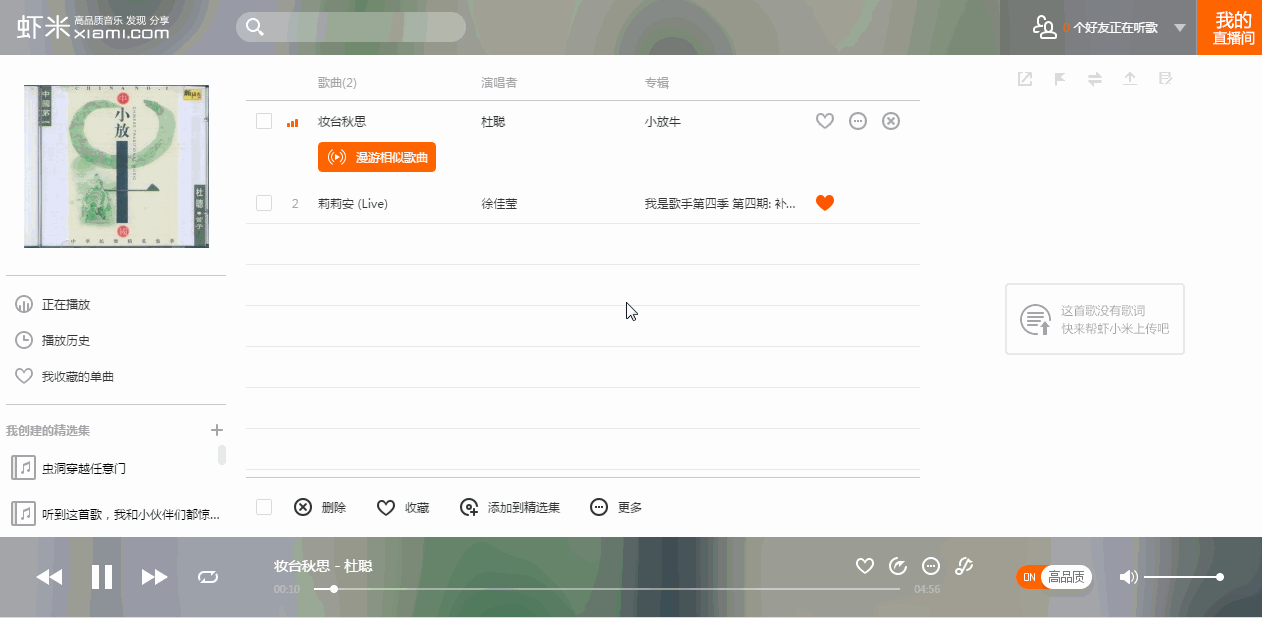 之后就很简单了,把下架的歌曲添加到精选集里就可以听啦~